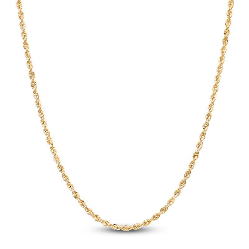Make a confident statement with this 4MM diamond cut rope chain crafted in 10K yellow gold. Its thicker profile delivers eye-catching brilliance and a premium feel, perfect for wearing solo or with heavier pendants.